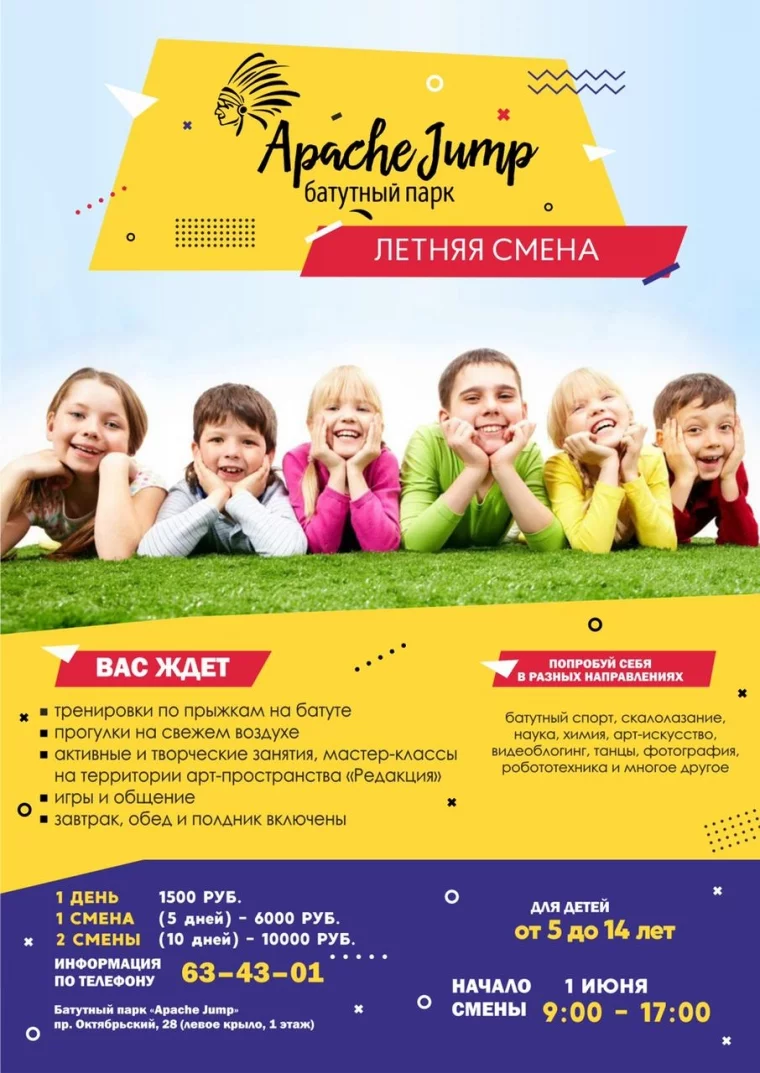 Прийти и попробовать формат летнего отдыха от Apache Jump можно в любой день недели, а начать ходить регулярно — каждый понедельник. Чтобы узнать подробности и записать ребёнка на летнюю смену, звоните по номеру +7 (3842) 63 43 01.