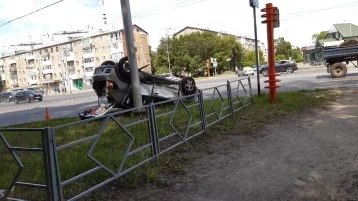 На опубликованных с места ДТП кадрах видно, что одна машина остановилась на трамвайных путях, другая после столкновения вылетела с дороги и перевернулась. На месте работают сотрудники ГИБДД и медики скорой помощи.