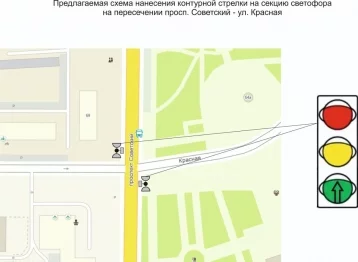 На светофорном объекте у КемГУ и филармонии в ближайшее время появится контурная стрелка. Об этом сообщили в администрации города.