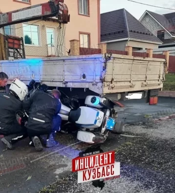 В Кемерове патрульный мотоцикл попал в ДТП. В Сети появились фотографии с места аварии.