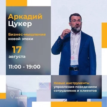 Известный спикер, бизнес-тренер и автор более ста книг по маркетингу, управлению и теории образования Аркадий Цукер 17 августа проведёт интерактивный семинар «Бизнес-мышление новой эпохи» в Кемерове. Он расскажет о компетенциях, которые следует развивать в современном мире, об актуальных бизнес-технологиях и о том, как сохранить клиентов.