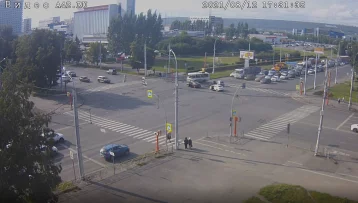 На кадрах видно, что автомобиль Mazda выехал на перекрёсток на запрещающий сигнал светофора. В результате он столкнулся с двумя машинами. Из-за случившегося на этом участке дороги возник затор.