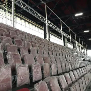 Сейчас на трибунах дворца устанавливают кресла. Также специалисты начинают собирать витражи на третьем этаже, чтобы закрыть от попадания солнечного света на чашу Арены и мультимедийную конструкцию.
