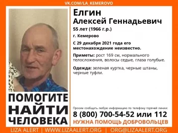 В Кемерове пропал Елгин Алексей Геннадьевич, ему 55 лет, сообщили в кузбасском поисковом отряде «Лиза Алерт».