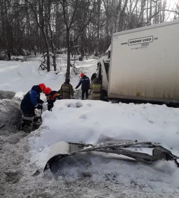 Как сообщили в Агентстве по защите населения и территории Кузбасса, ДТП произошло недалеко от деревни Симоново, столкнулись Scania и КамАЗ. Пострадал водитель фуры, его госпитализировали. Чтобы достать пострадавшего из кабины автомобиля, понадобилась помощь спасателей.