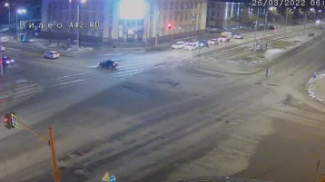 В Кемерове на Кузнецком проспекте сегодня рано утром опрокинулся автомобиль. Инцидент попал на дорожные камеры A42.RU.