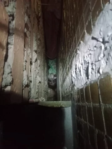 В Междуреченске кошка попала в ловушку. Она застряла между пристройкой и домом.