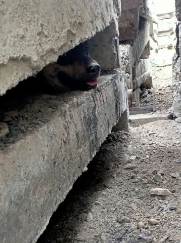 В Мариинске собака попала в ловушку. Животное застряло в бетонных блоках на улице Загородная.