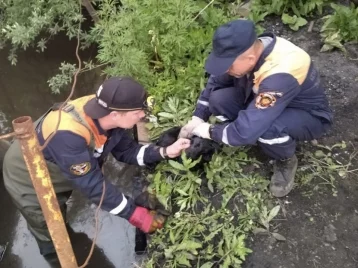 В Междуреченске собака попала в технологическую яму. Ей понадобилась помощь спасателей.