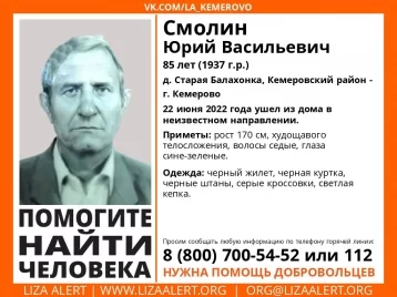 В деревне Старая Балахонка под Кемеровом пропал 85-летний мужчина. 22 июня он ушёл из дома в неизвестном направлении.