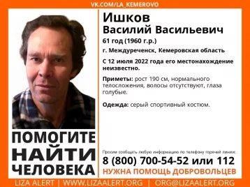 В Междуреченске пропал 61-летний мужчина. 12 июля он ушёл из дома и не вернулся, сообщили волонтёры поискового отряда «Лиза Алерт».