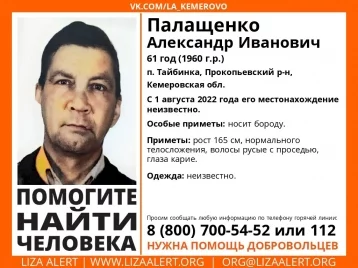 В посёлке Тайбинка в Прокопьевском округе ищут 61-летнего мужчину. Об этом сообщили в поисковом отряде «Лиза Алерт».