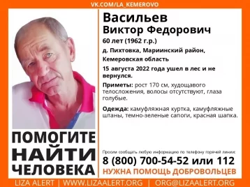 В Деревне Пихтовка в Мариинском округе ищут 60-летнего мужчину. Он ушёл в лес 15 августа и не вернулся.