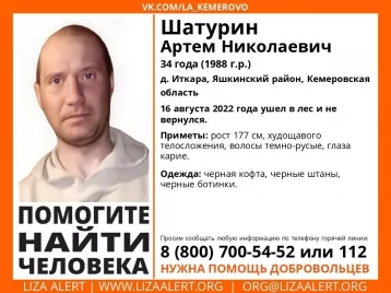 В деревне Иткара в Яшкинском округе без вести пропал 34-летний мужчина. 16 августа он ушёл в лес и не вернулся, сообщили волонтёры поискового отряда «Лиза Алерт».