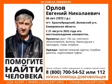 В Беловском округе разыскивают 50-летнего Евгения Николаевича Орлова. Информацию опубликовали во ВКонтакте волонтёры отряда «Лиза Алерт Кузбасс».