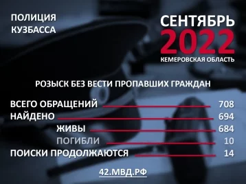 Полиция озвучила данные о поисках пропавших кузбассовцев за сентябрь 2022 года. За месяц к правоохранителям поступило 708 заявок на поиск людей.