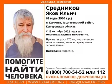 Всех, кому что-либо известно о местонахождении Якова Средникова, просьба сообщать по телефонам: 8-800-700-54-52 или 112.