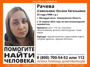 Пропала 33-летняя Оксана Рачева (Савельева). О её местонахождении ничего неизвестно с 10 апреля.