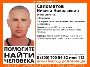 Пропал 36-летний Никита Саломатов. О его местонахождении ничего не известно с 4 апреля.