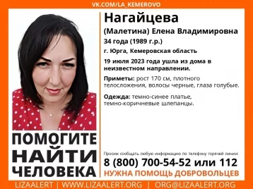 В Юрге пропала 34-летняя Елена Нагайцева (Малетина). 19 июля она ушла из дома в неизвестном направлении, сообщили волонтёры ПСО «Лиза Алерт».