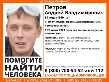 В посёлке Плотниково без вести пропал Андрей Петров. О его местонахождении ничего не известно с 25 июля.
