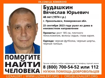 48-летний Вячеслав Будашкин ушёл из дома 23 сентября и не вернулся.