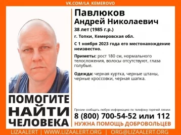 В городе Топки без вести пропал мужчина. О начале поисков сообщили волонтёры отряда «Лиза Алерт».
