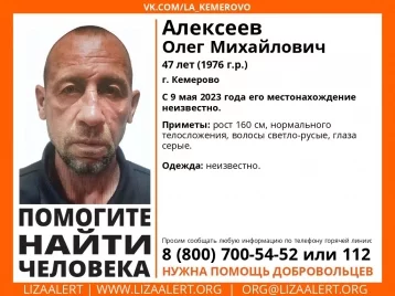 47-летний Олег Алексеев пропал в Кемерове в День Победы. С 9 мая 2023 года о его местонахождении ничего не известно.