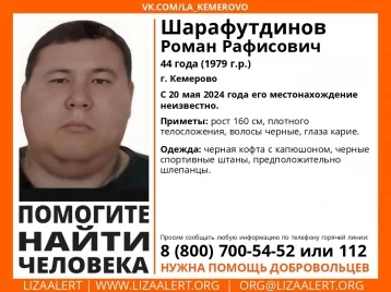 Пропал 44-летний Роман Шарафутдинов. О его местонахождении ничего не известно уже неделю, с 20 мая.