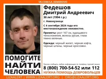 30-летний Дмитрий Федешов пропал 4 сентября, и с этого дня о его местонахождении ничего не известно.