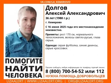 В Кемерове без вести пропал 36-летний Алексей Долгов. О местонахождении мужчины ничего не известно с 16 июня, сообщают волонтёры поисково-спасательного отряда «Лиза Алерт».
