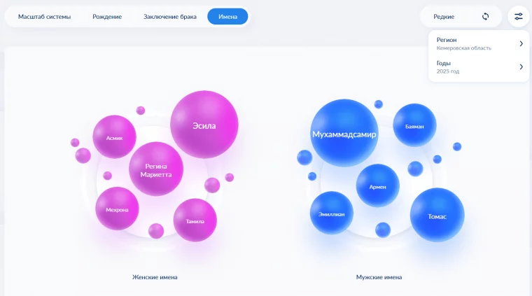 В число самых редких имён, которыми кузбассовцы называли своих детей в 2025 году, вошли Мехрона и Эмиллиан. Среди наиболее популярных — София и Михаил.