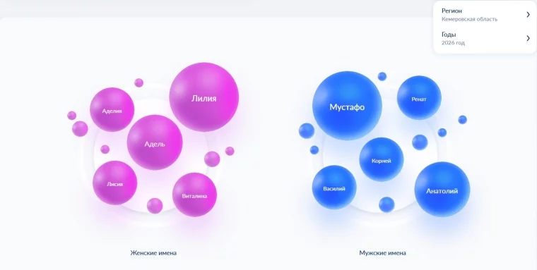 За первый месяц 2026 года девочек реже всего называли Виталина, Лилия, Лисия, Адель и Аделия. Самыми редкими именами мальчиков оказались Мустафо (что в переводе с арабского означает «избранный»), Ренат (происходит от латинского Renatus — «возрождённый»), а также Корней, Василий и Анатолий.