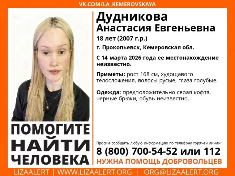 Анастасия Дудникова исчезла 14 марта 2026 года.