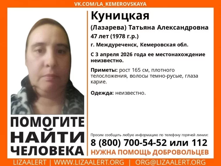 Татьяна Куницкая (Лазарева) исчезла 3 апреля 2026 года.