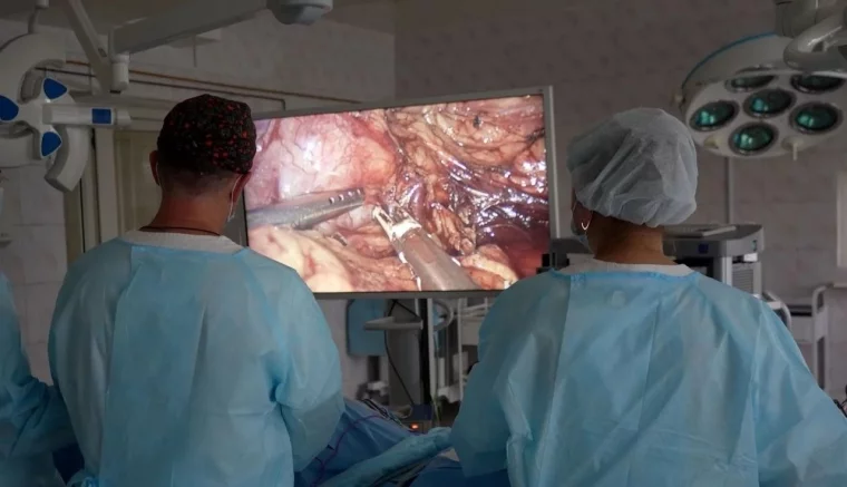 Бригада отделения онкоурологии в составе заведующего отделением Дмитрия Троегубова, ассистента Галины Светиковой, операционной медсестры Марины Колабиной, анестезиолога-реаниматолога Алины Исмаиловой и сестры-анестезистки Жанны Брокевич провели лапароскопическую операцию — аккуратно удалили опухоль через небольшие проколы.