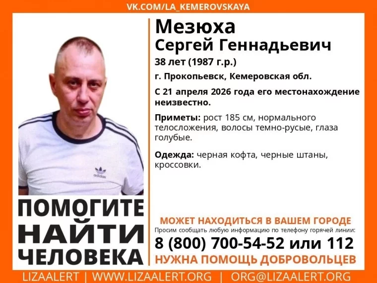 В Прокопьевске ищут 38-летнего мужчину. О местонахождении Сергея Мезюхи ничего не известно с 21 апреля.