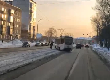 В Кемерове сошедший с рельсов трамвай частично заблокировал дорогу
